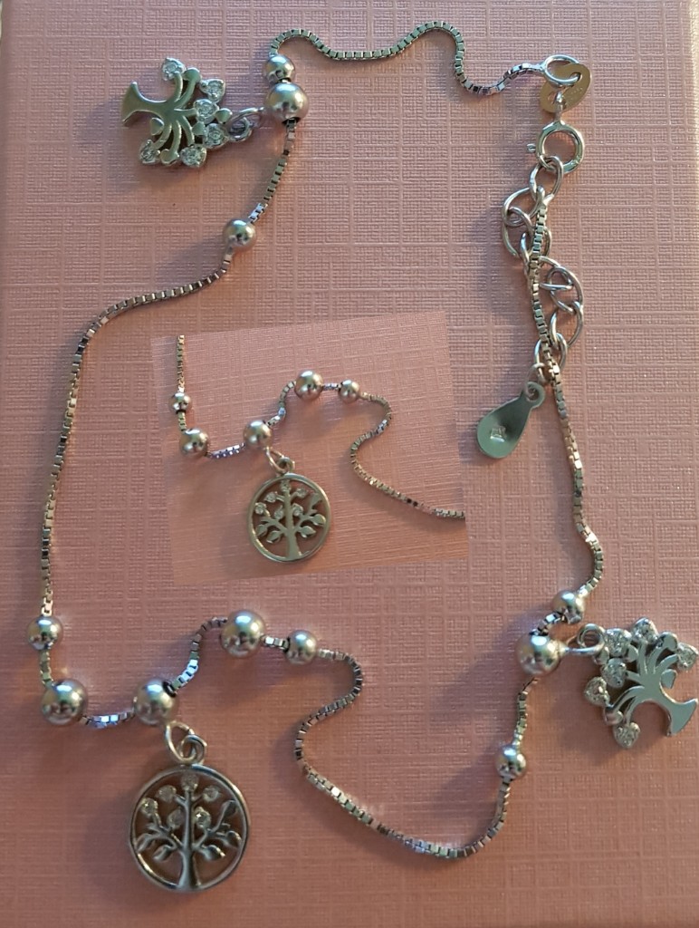 Wunderschöne 925 Silberfußkette mit 3 wunderschönen Bäumen.