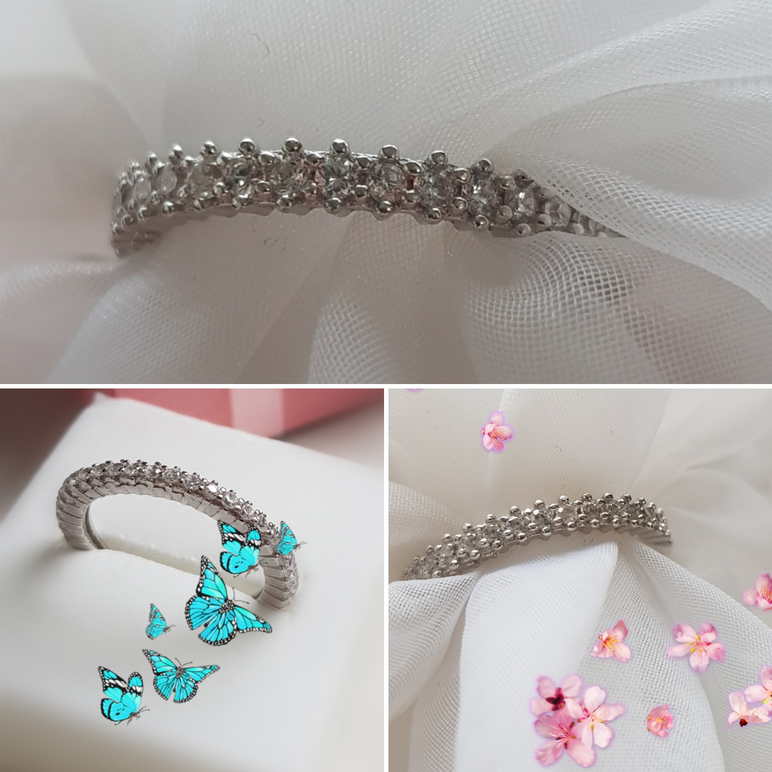 · Das kleine Blümchen besteht aus 1 Reihe schönster weißer Glitzersteinchen, welche sich rund um den Ring legen.