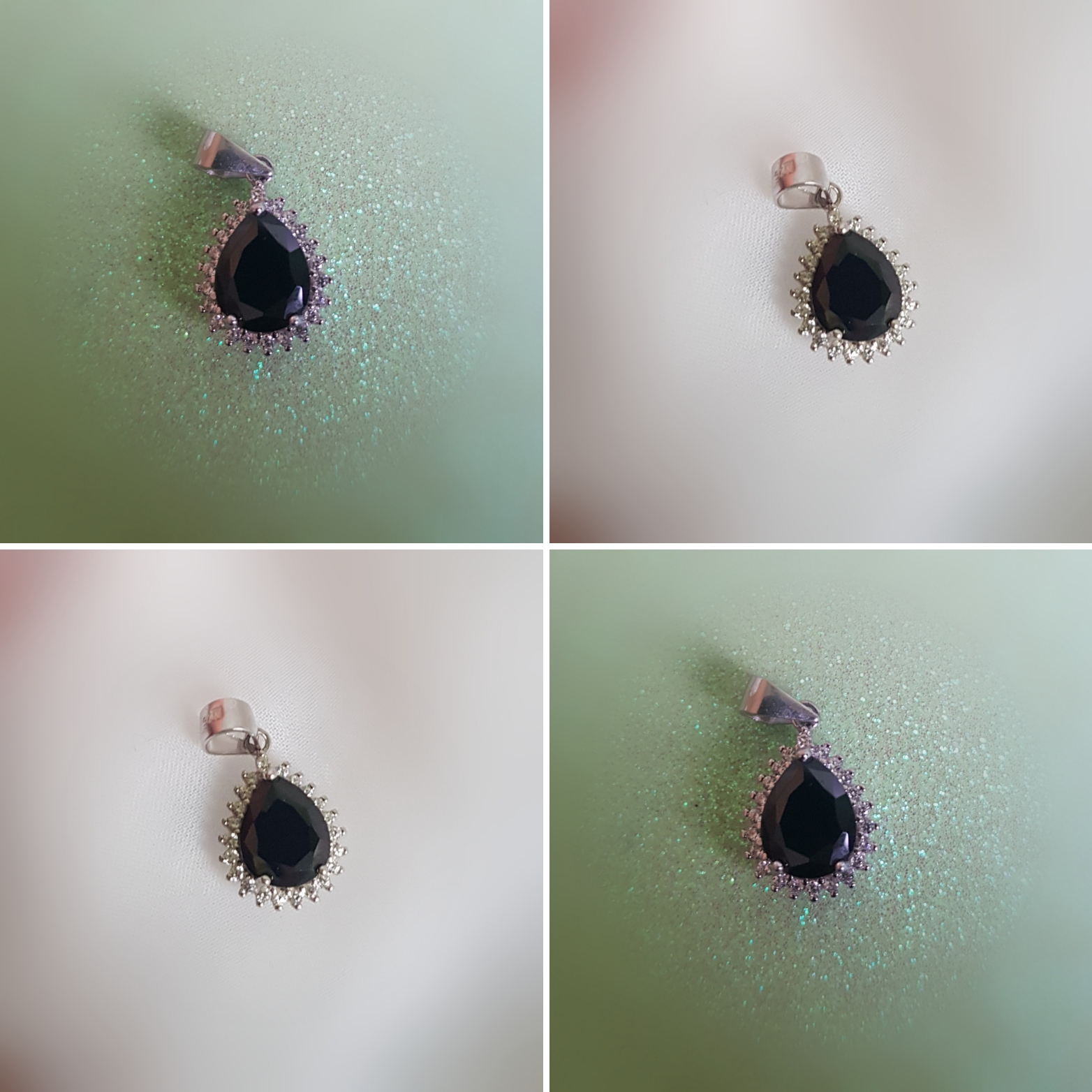 · Er hat die Form eines Tropfens, welcher von glänzenden Steinchen umrandet ist und durch einen schwarzen Zirkonia ausgefüllt wird.