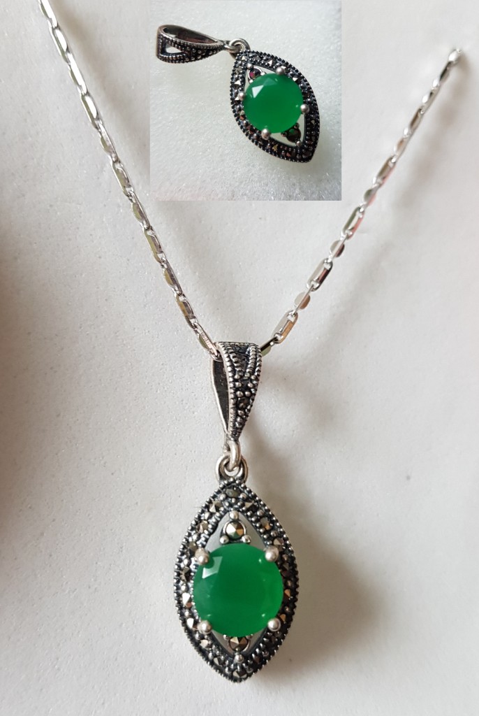 Entdecken Sie unseren wunderschönen 925 Silberanhänger mit einem atemberaubenden mattgrünen, hochwertigen Schmuckstein: