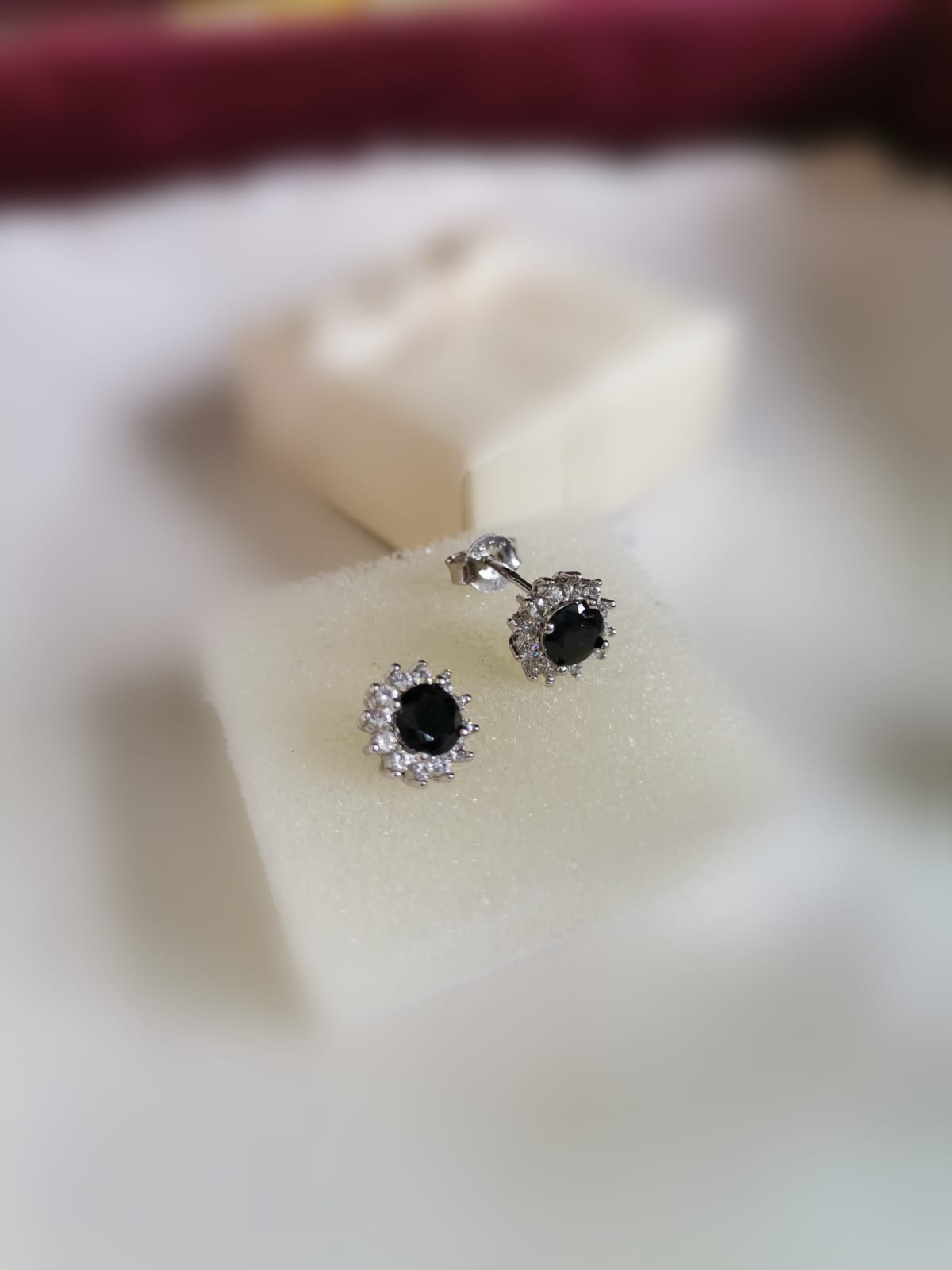 · Sie bekommen bezaubernde Ohrringe, mit schwarzen Zirkonsteinen.