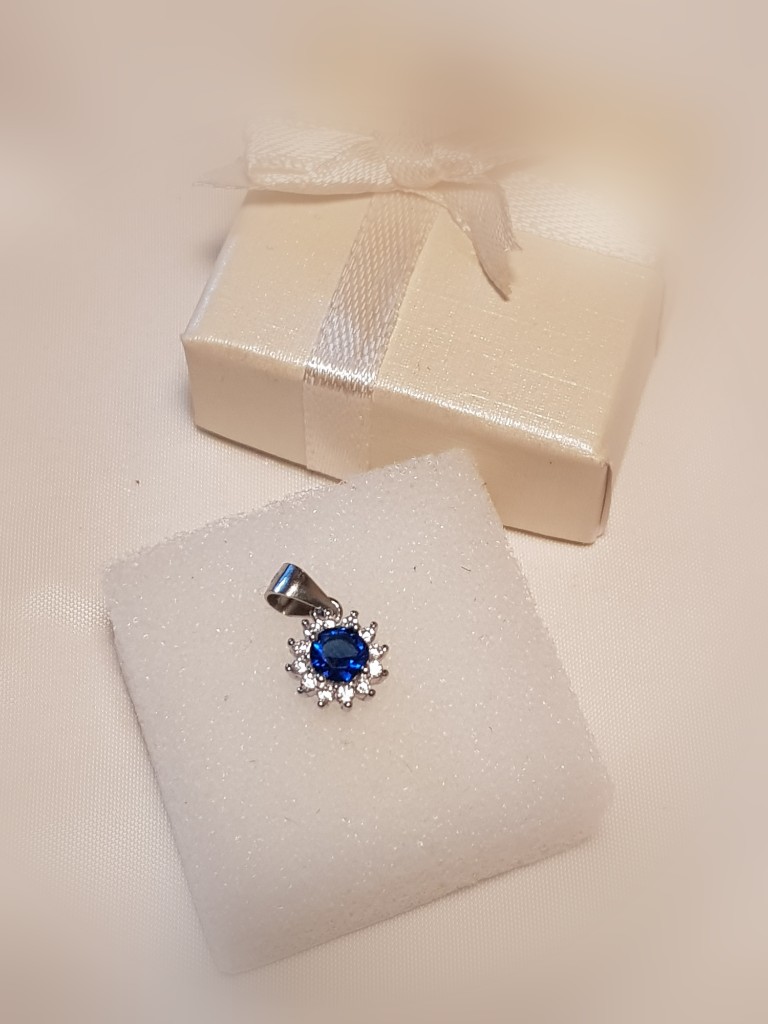 Wunderschöner 925 Anhänger in bezaubernden weiß glänzenden Steinen gefasster blauer Schmuckstein.