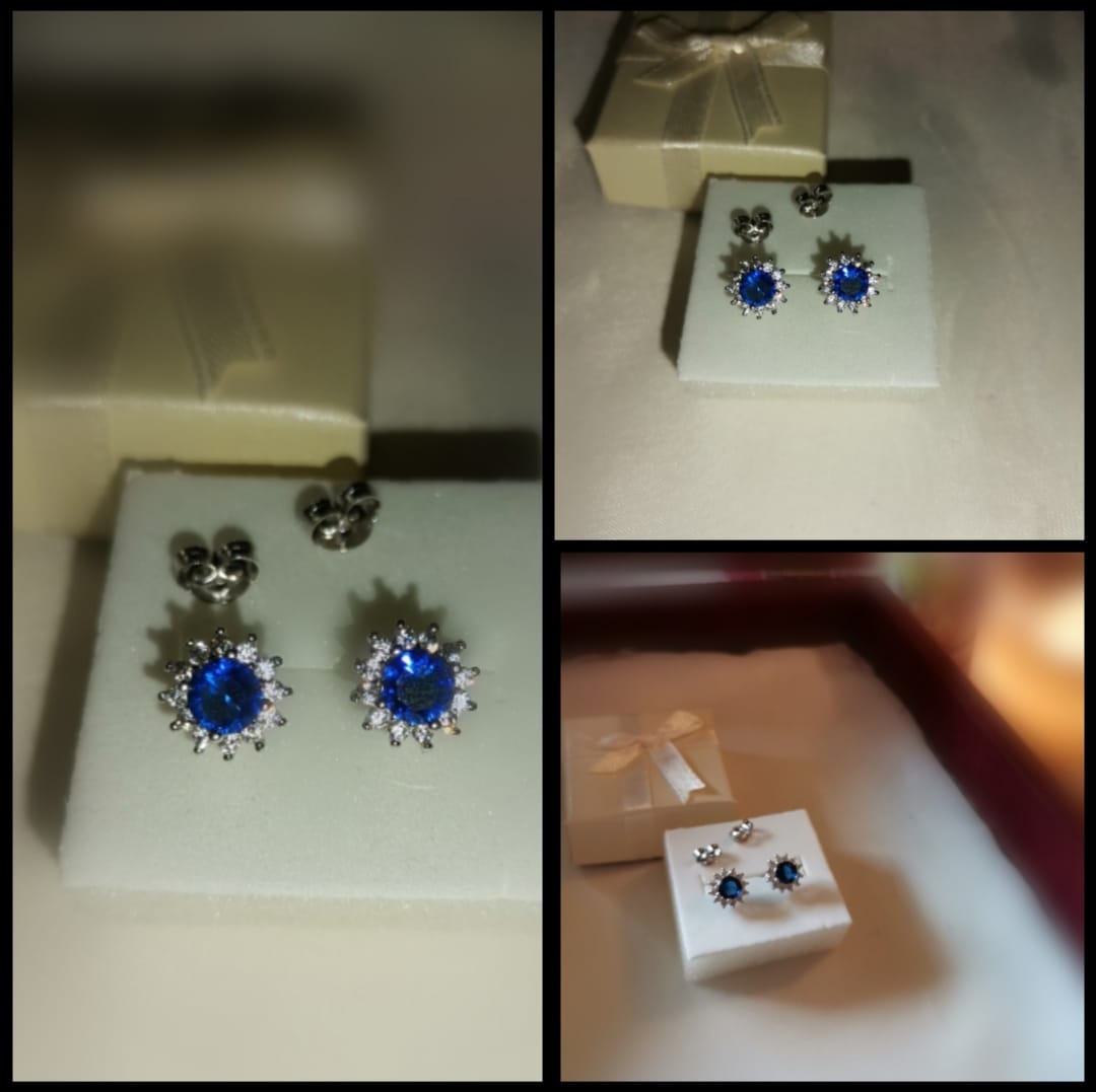 · Sie bekommen bezaubernde Ohrringe, mit blau leuchtenden Zirkonsteinen.