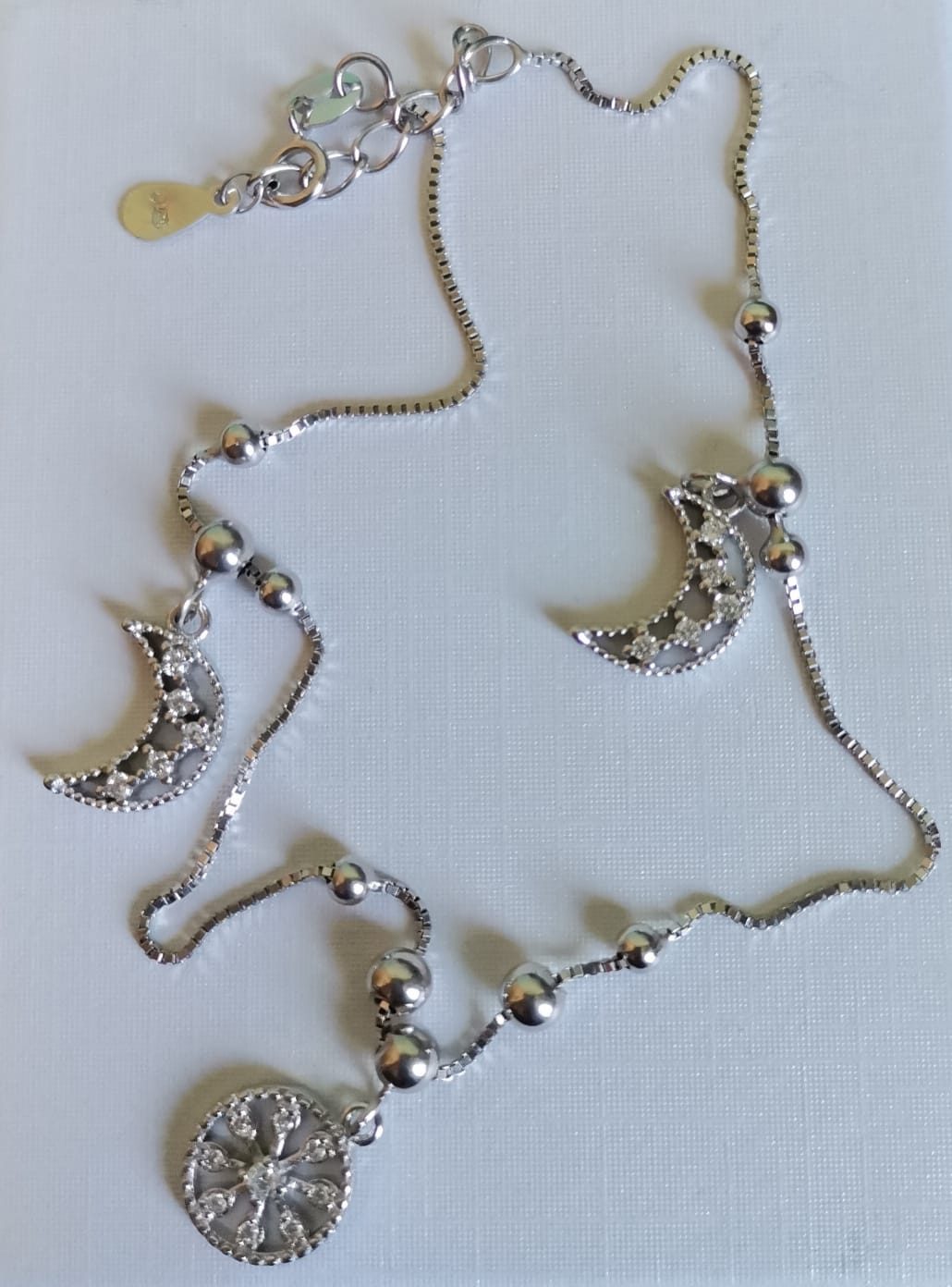 - Diese Fußkette ist ein wahrer Blickfang mit ihren zwei wunderschönen Halbmonden und einem zentralen Kreisanhänger.