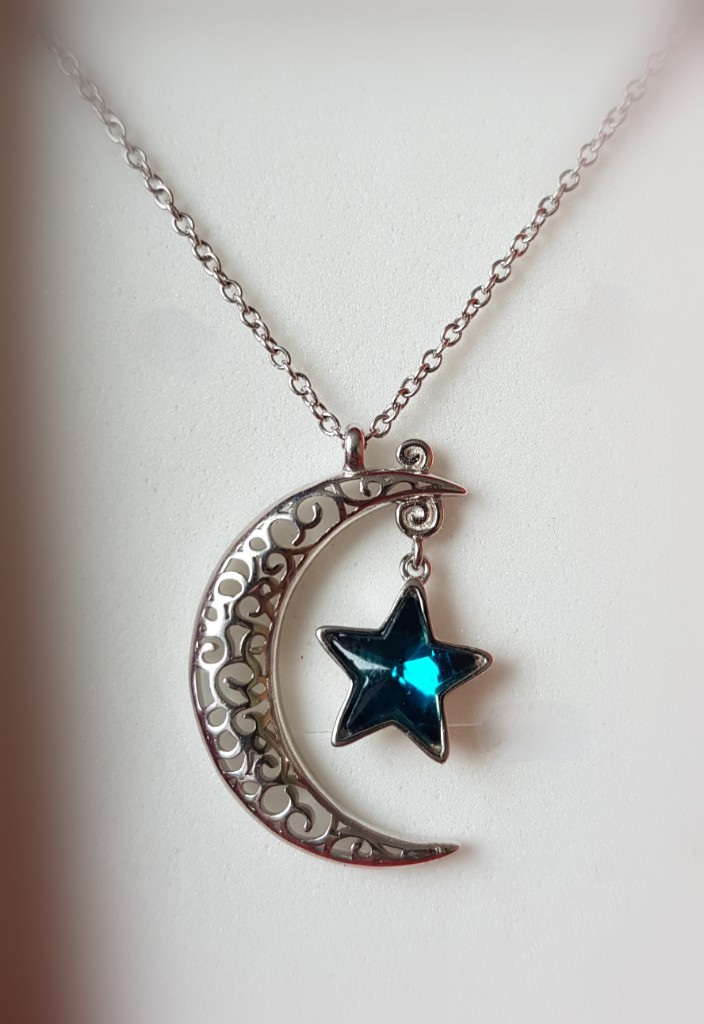 · Sie erhalten von uns eine bezaubernde Kette mit einem Halbmondanhänger, welcher einen blauen sternenförmigen Schmuckstein trägt.
