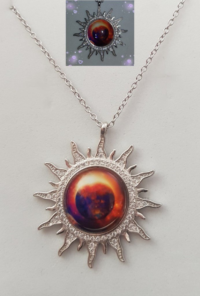 · Sie erhalten von uns eine bezaubernde Kette mit schimmerndem, sonnenförmigem Anhänger, welcher durch seine Struktur die Optik einer wunderschönen feuerfarbenen Sonne erhält.