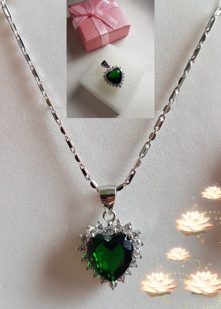 Entdecken Sie unseren wunderschönen 925 Silberanhänger mit einem grünen, hochwertigen Schmuckstein in Herzform: