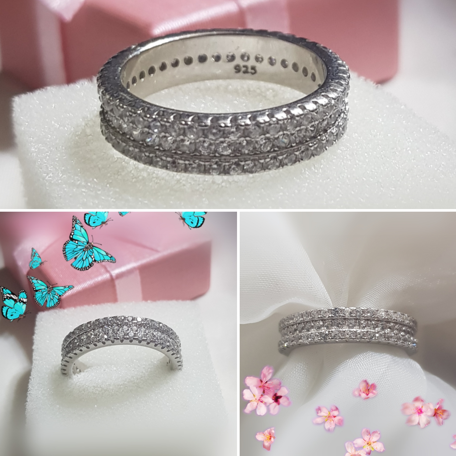 · Der Ring besteht aus 3 Reihen schönster weißer Glitzersteinchen, welche sich rund um den Ring legen.