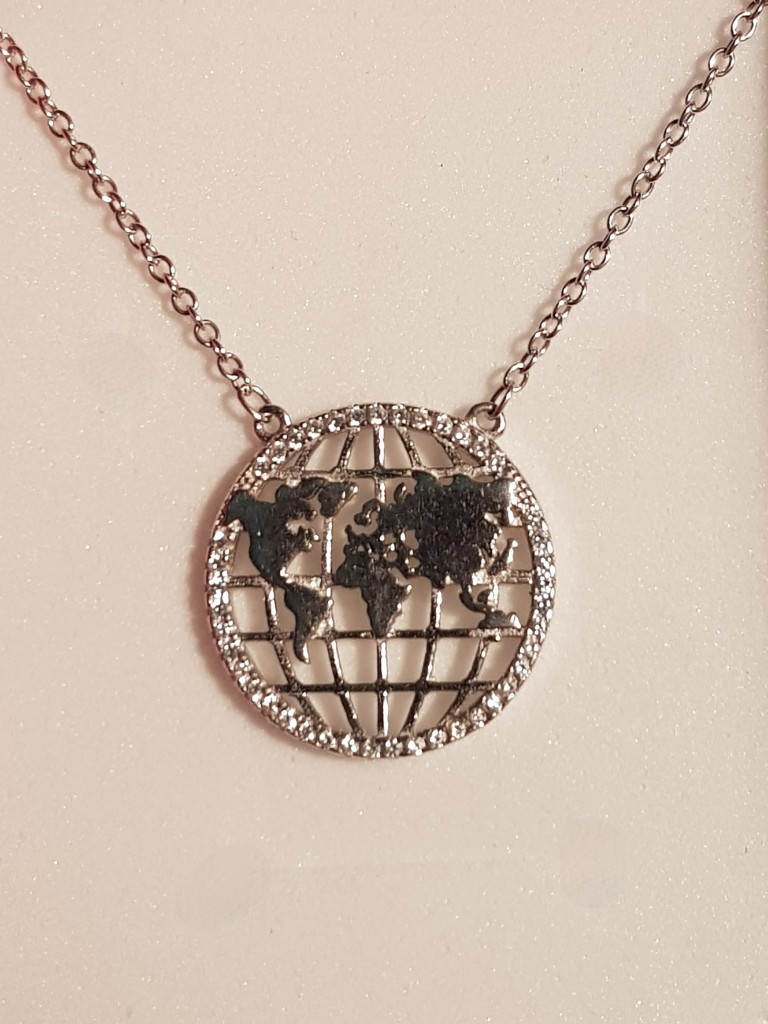 Wunderschöne 925 Silberkette mit einem Anhänger in Form unserer Erde.